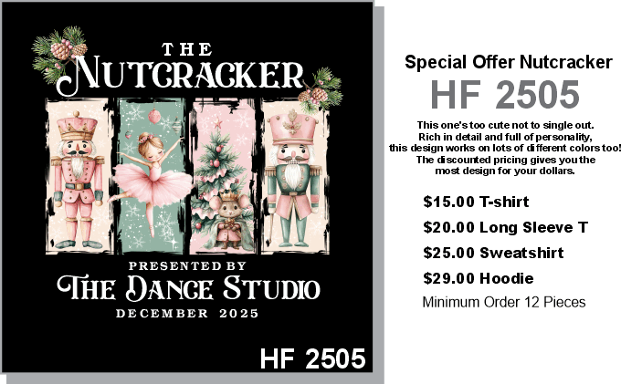 ![]() Design HF2505 CLICK FOR DETAILS As Shown On Black T |