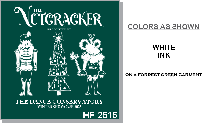 ![]() Design HF2515 1 Ink Color As Shown On Forest Green |