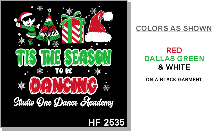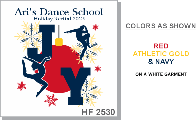 Choose one of these Holiday Designs for your show or let us create something different for you. These Holiday Designs can be completely customized to fit your show. Pricing is determined by the shirt color, style, and number of ink colors used in the design. |